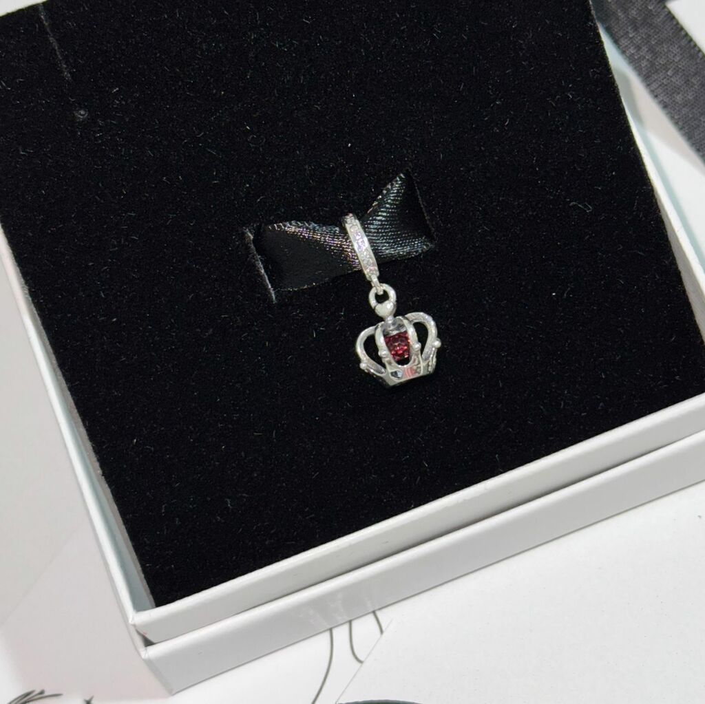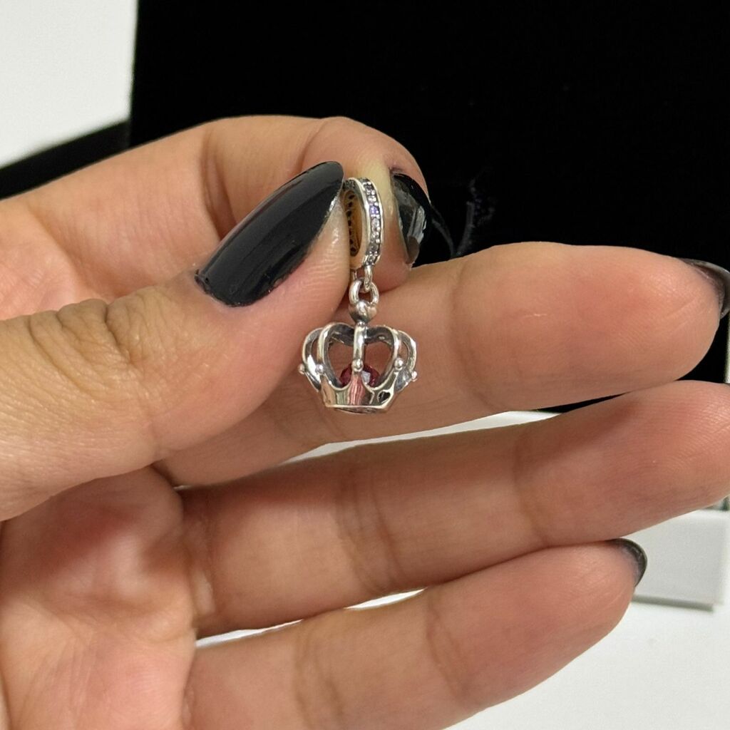 Transforme cada momento em uma celebração com o Berloque de Prata Coroa Cristal Rosa!
